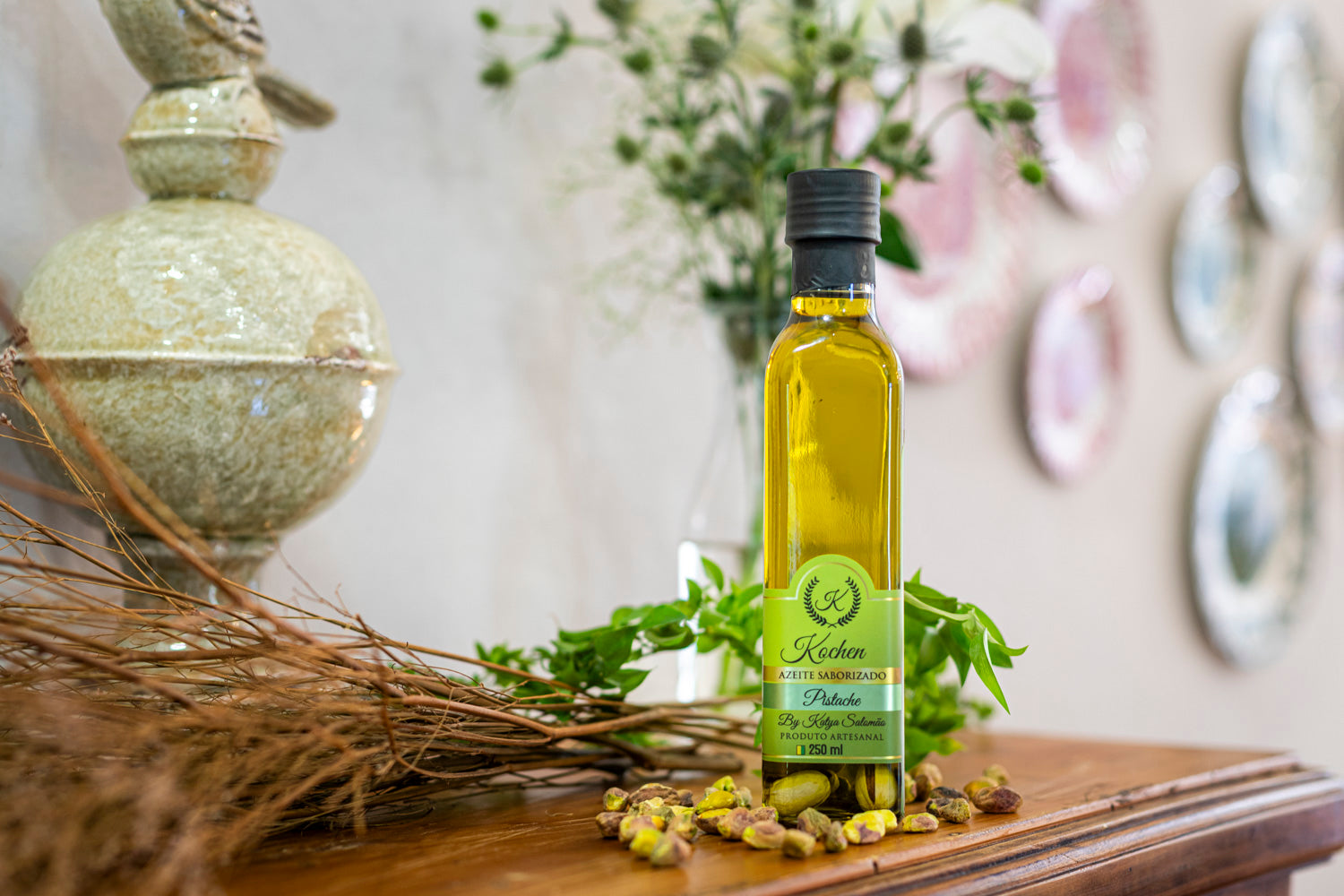 Nosso Azeite de Pistache é mais do que um tempero – é um ingrediente que conta histórias de sofisticação e criatividade. Produzido com dedicação, ele é o parceiro ideal para quem busca surpreender o paladar e impressionar à mesa.